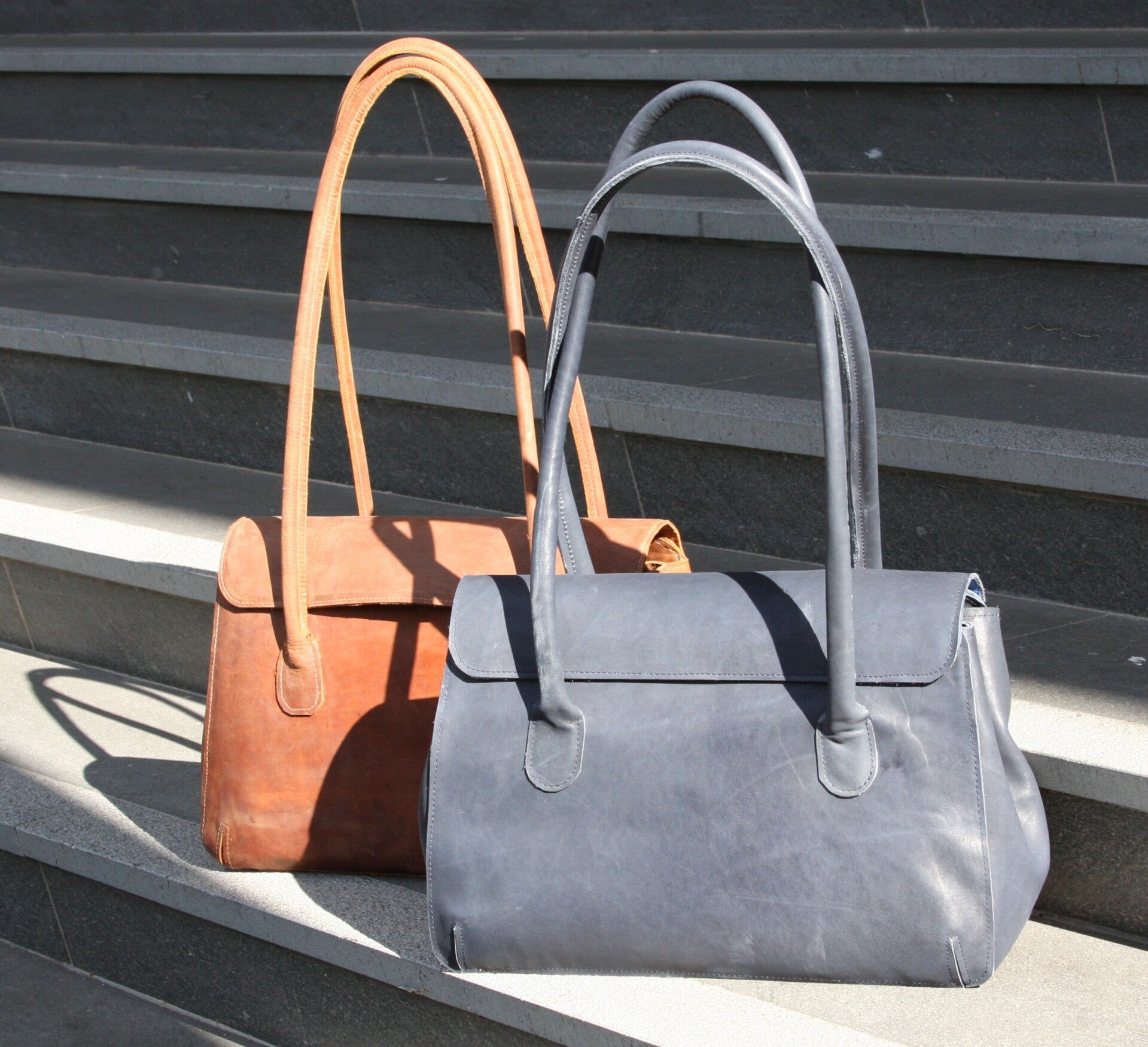 De hengsels van beide uitvoeringen zijn 90 cm lang en dus lang genoeg om de tas over de schouder te dragen.